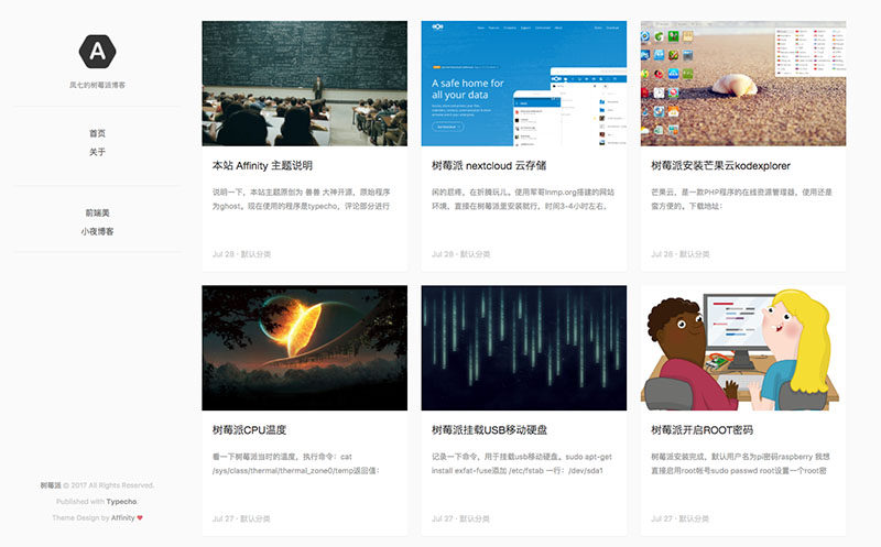 移植自兽兽的一款开源 ghost 模板,原作者:https://github.com/Showfom/Affinity