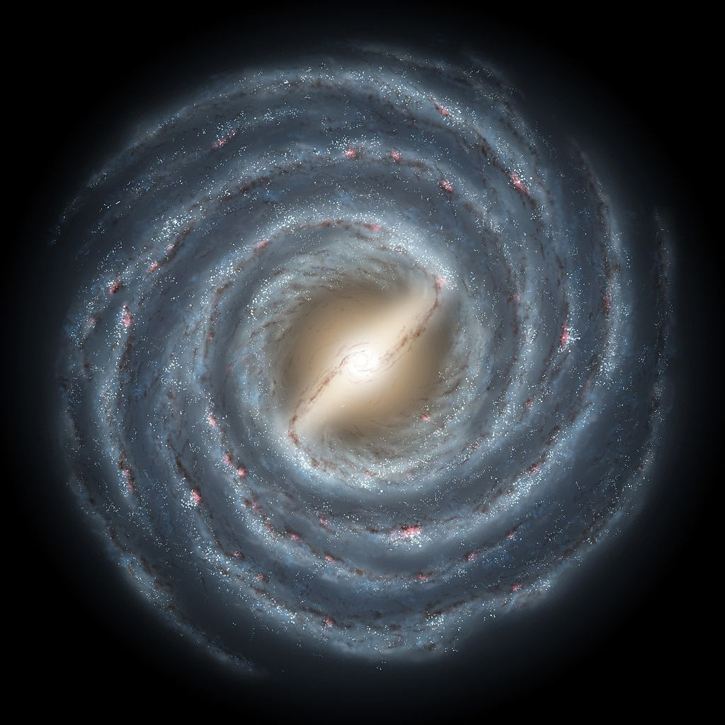 银河系呈扁球体,具有巨大的盘面结构,由明亮密集的核心、两条主要的旋臂和两条未形成的旋臂组成,旋臂相距4500光年。太阳位于银河一个支臂猎户臂上,至银河中心的距离大约是2.6万光年。
