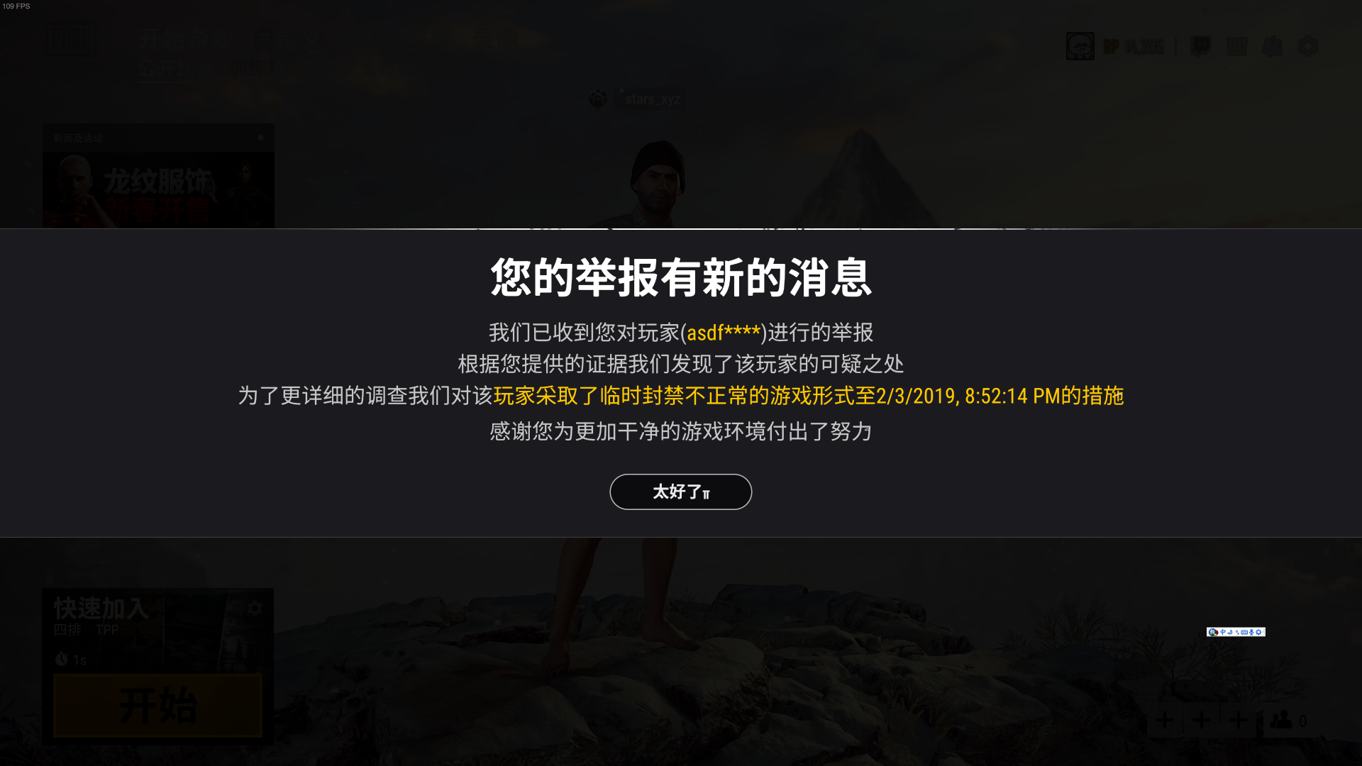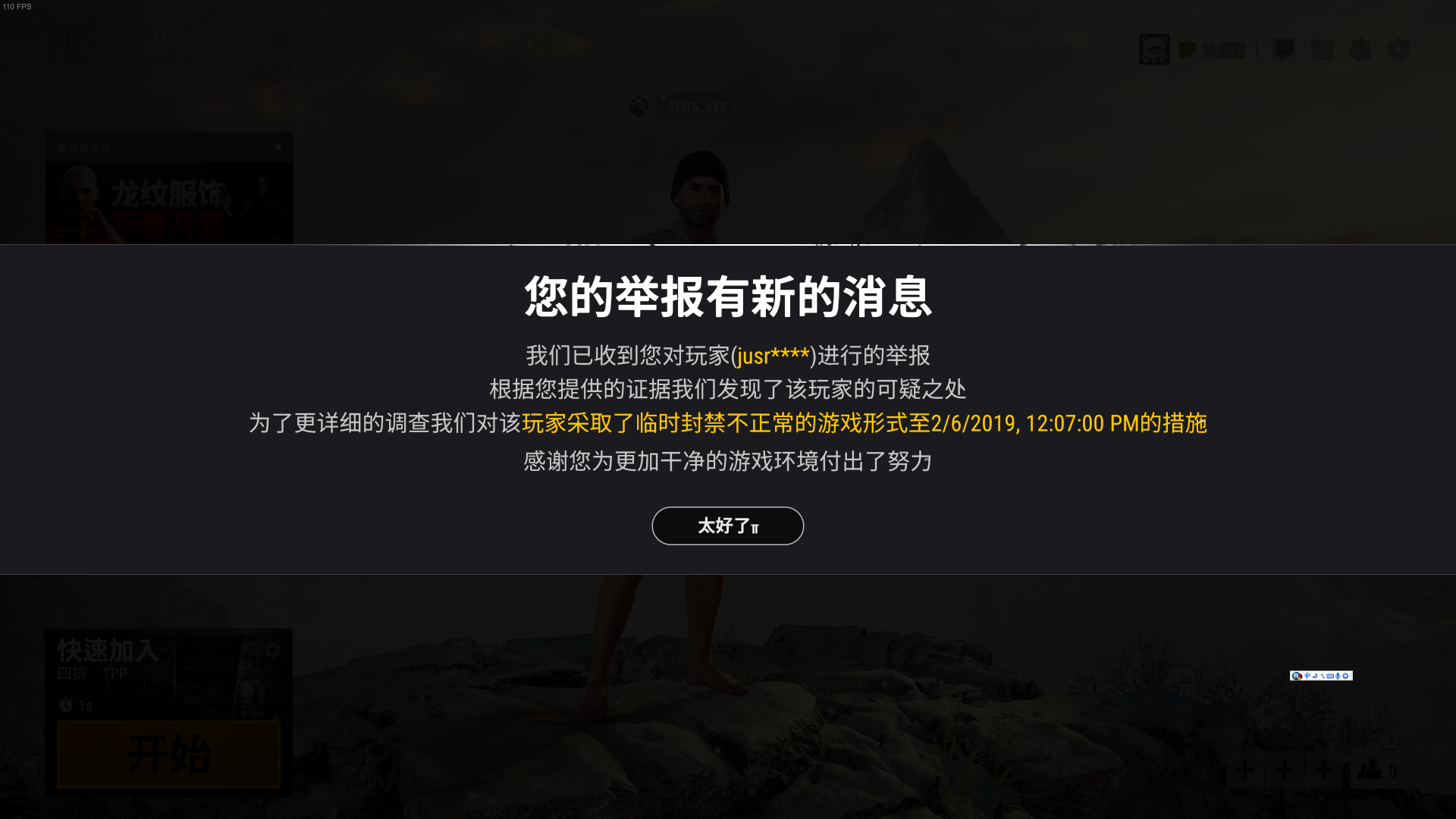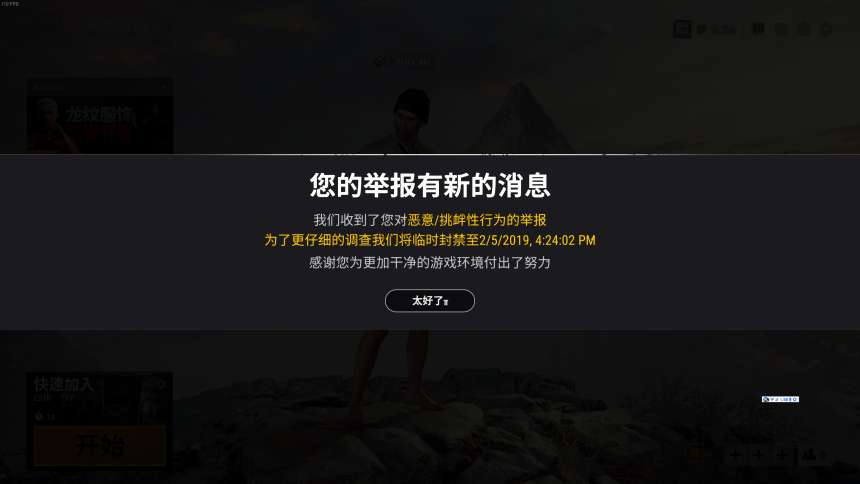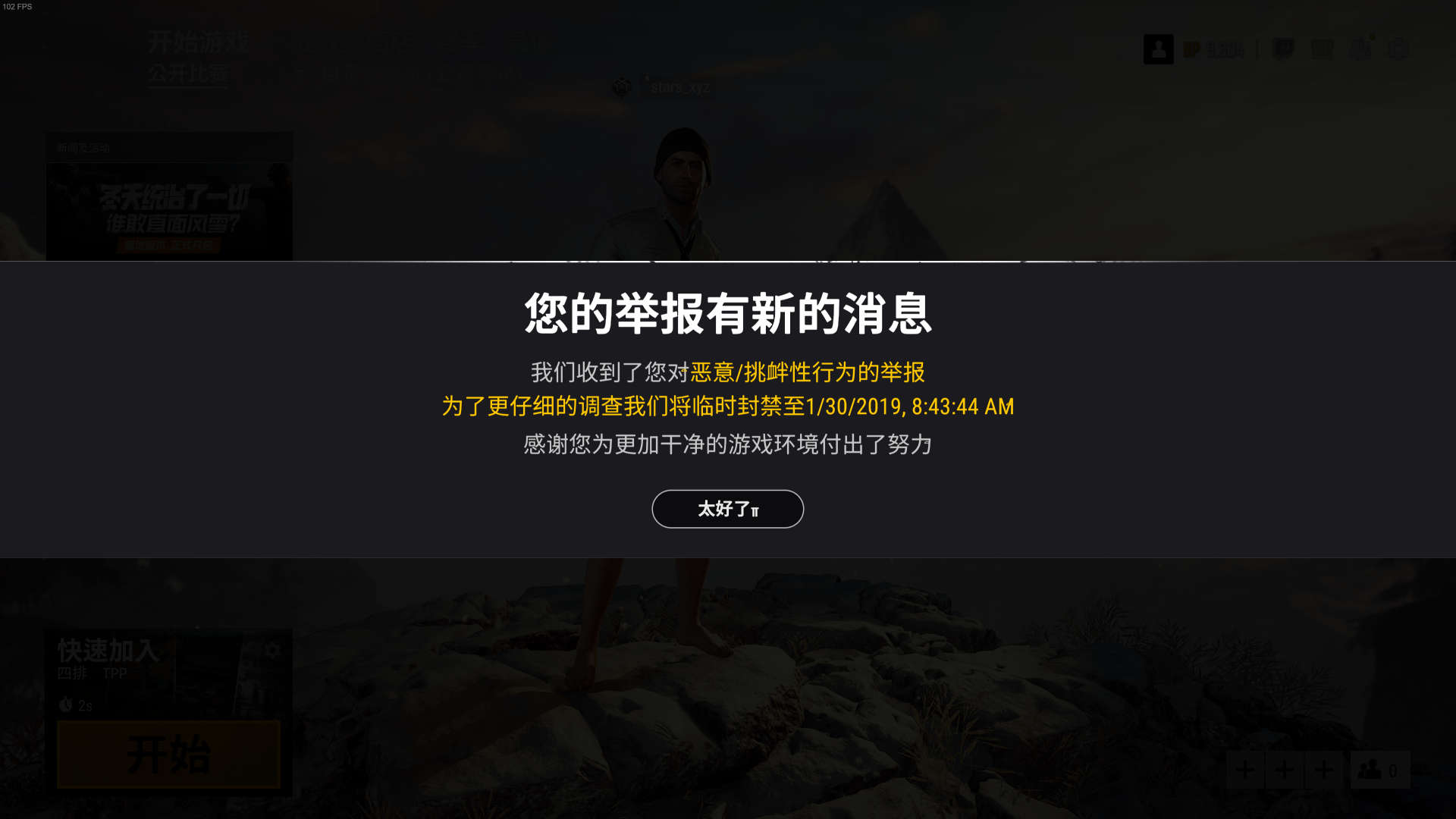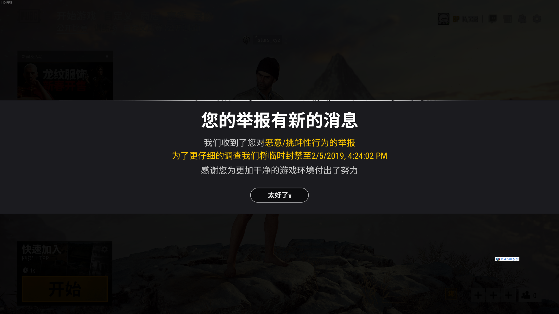 今天第一场落地成盒,第二场又被外挂打死,真鸡儿蛋疼!2.6