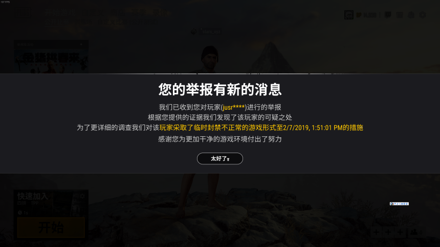 我想PUGB这个FPS游戏既然每场可以录像,为什么不用击杀1个人就WIN系统截一张荣誉击杀图,AI检测有非官方元素的截图自动上传到云。这样公开到封号公告页面,误封也方便解除,封号的也无话可说。不管外挂怎么高明,最终的处理结果都是要给玩家眼睛看的。