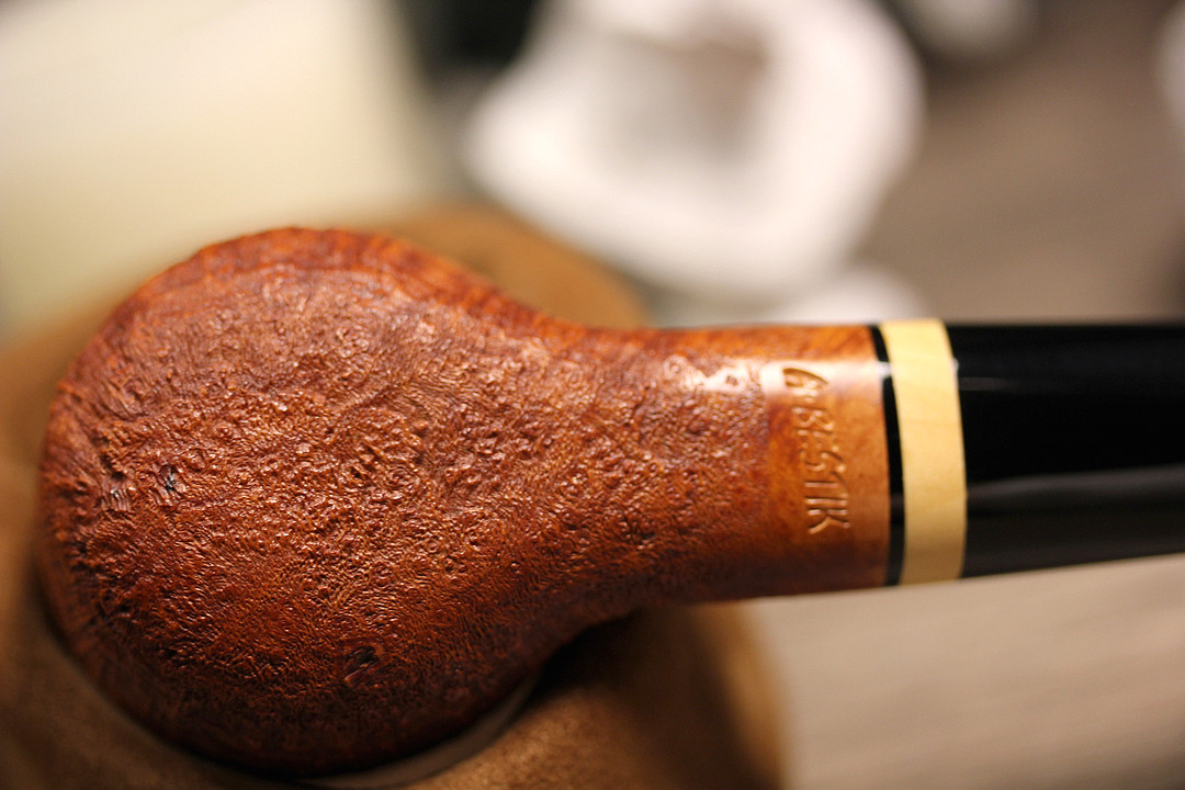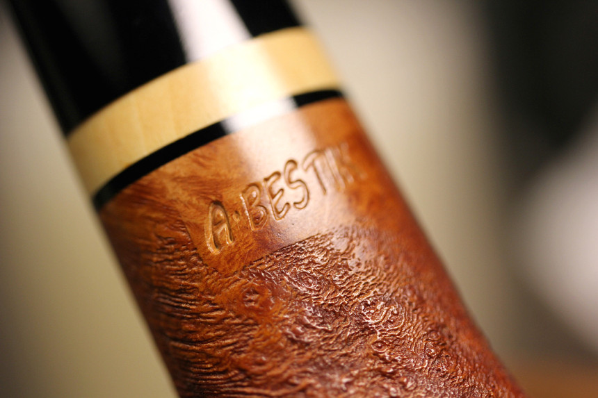 乌克兰 Alexsander Bestik也是近年来出现的一位优秀的 为数不多的乌克兰的斗师,其作品风格简洁流畅,多以精致的小巧经典斗型为主,光面的作品 可以看出用料讲究,纹理出色,抽烟质量也是非常的优秀!更为关键的是——相对于动辄上万的一些俄罗斯斗师而言,他的价格非常的“亲民”,当然,或许 也只是暂时性的吧。。。。。。。一只非常漂亮的经典POT斗型,精致的让人爱不释手! V草利器!
