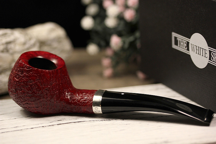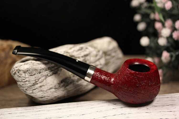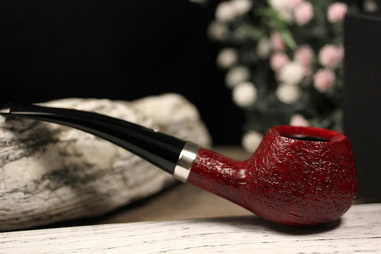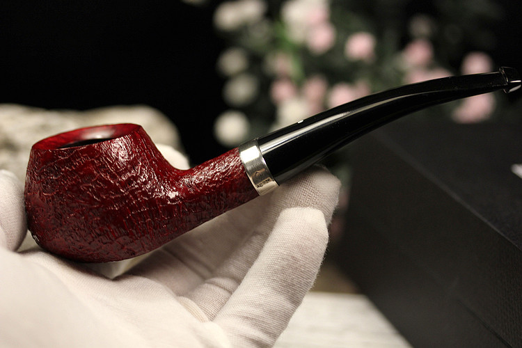 英国登喜路烟斗RubyBark 5128红宝石喷砂银圈 优雅的外交官斗型